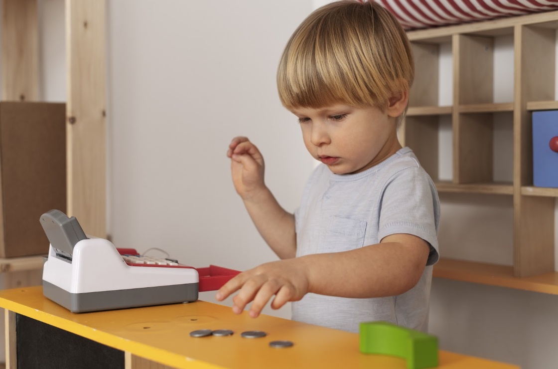 Игровые модули в виде магазинов, киосков, касс и прилавков помогают детям освоить принципы взаимодействия: покупка, обмен, обслуживание, очередь, денежные расчёты.