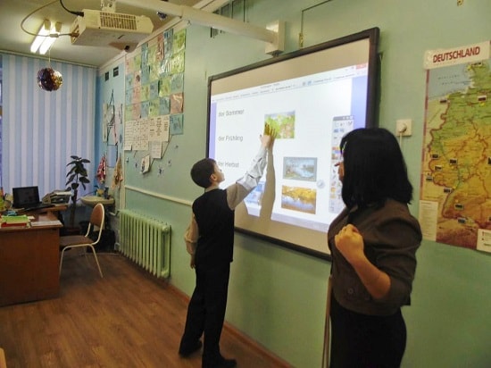 Такое оборудование класса позволит разнообразить занятия, включить в программу обучения просмотр мультфильмов и передач на немецком языке, мультимедийные игры и тесты.