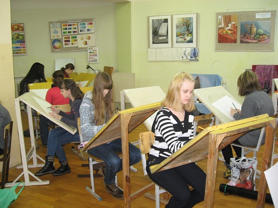 В идеале помещение для занятий рисованием и черчением должно быть оснащено раковиной с водой и подсобкой для хранения художественных принадлежностей, пособий и ученических работ. Для оборудования классов используются: