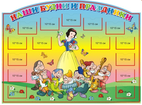 Стенд для группы в виде плаката легко и быстро оформить. Достаточно поменять фотографии в кармашках из прозрачного пластика. Не нужно портить фото детей скотчем и кнопками. Менять тематику стенда можно так часто, как захотите.