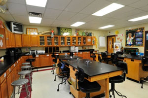 СанПиН 2.4.2.2821-10 «Санитарно-эпидемиологические требования к условиям и организации обучения в общеобразовательных учреждениях» устанавливают общие требования к ширине проходов (п. 5.6), размеру учебной мебели в зависимости от возраста и роста учащихся (пп. 5.2 и 5.3), а также допускают наличие маркерной и/или интерактивной досок (п. 5.7) и предписывают наличие лаборантской в кабинетах химии, физики и биологии (п. 4.10).