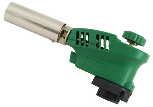 Газовая горелка с пьезоподжигом установка на баллон, имеет широкую область применения: работа с термоусаживаемыми материалами, плавка и сварка изделий из стекла и пластмасс, разжигание огня (костер, мангал, камин и кальян), разморозка замков, водопроводных труб, удаление старой краски, обработка поверхностей и местный подогрев в производственных, лабораторных условиях, в мастерских. * Диаметр сопла: 20 мм * Время прогрева: 70-90 секунд * Температура пламени: 1100-1400 °С (макс.) * Тип газового баллона: цанговый * Тип поджига: встроенный пьезоэлемент * Материал изделия: алюминий, медь, сплав цинка, пластик