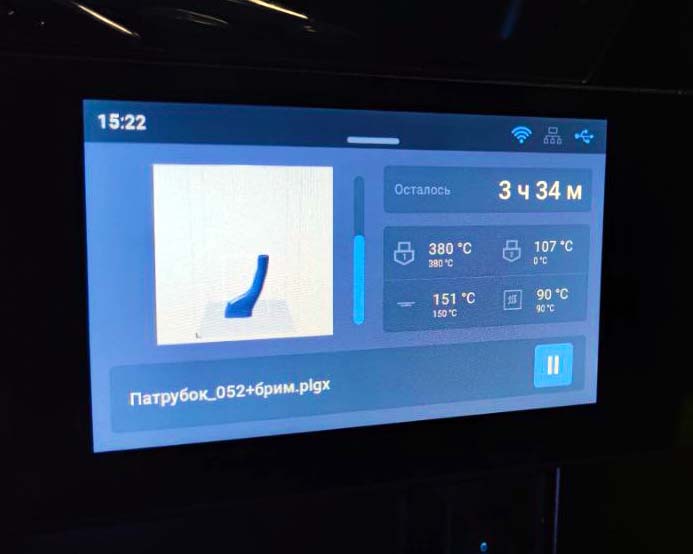 Основные системы: Контроль подачи пластика; контроль наличия пластика; контроль первого слоя; встроенная система профилей материала; сетевая работа