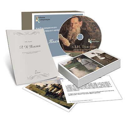 CD-диск пособия включает в себя текстовый и изобразительный материал, посвященный творчеству Л.Н. Толстого; портреты писателя, иллюстрации к рассказу «После бала» и роману «Война и мир»; вопросы и задания.