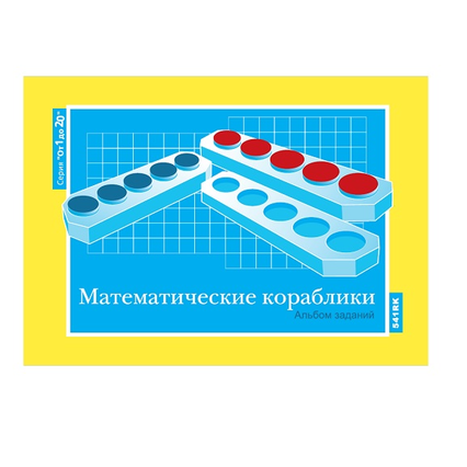 Альбом карточек на пружинке для индивидуальной и парной работы. Иллюстрированные задания, игры и упражнения с "математическими корабликами". Дети еще не умеют читать, поэтому на карточках альбома изображены все манипуляции, которые ребенок должен проделать со счетным материалом. Иногда ему предлагается занести в тетрадь результат произведенных действий. Возможен и обратный порядок: ребенок высказывает предположение о результате действия и заносит его в тетрадь, после чего проверяет ответ при помощи работы с корабликами. Дети пересчитывают фишки с закрытыми глазами, выкладывают фигурки из фишек, помещают их в кораблики для демонстрации перестановочного закона сложения, осваивают состав чисел первого десятка, складывают и вычитают, изучают различные приемы перехода через десяток. Описаны игровые задания для работы в парах: "Где спряталось число?", "Угадай цвет последней фишки", "Вазы вдоль стен" и другие. Задания из альбома можно выполнять и на Магнитном плакате.