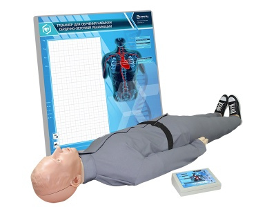 Тренажер-манекен имеет подвижное соединение тела с головой и оснащен анатомическими ориентирами, что делает его максимально схожим с человеком. Контроль проведения манипуляций осуществляется с помощью светозвукового сопровождения и системы датчиков, которая выводит результаты на табло и контроллер.
