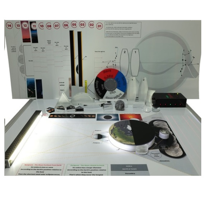 Набор лабораторного оборудования «Астрономические явления» предназначен для демонстраций и экспериментальной деятельности при изучении законов геометрической оптики и астрономических явлений в рамках курса естествознания, физики, географии как в начальной и средней школе. В состав набора входят источники света, оптические тела (линзы, зеркала и пр.), модели астрономических объектов и карты проектов с инструкциями по выполнению экспериментов.