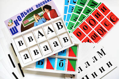 Комплектность: карточки с буквами и знаками на белом фоне – 137 шт., карточки с буквами на красном, синем и зеленом фоне – 129 шт., карточки для обозначения звуков и слияний – 14 шт., пластиковые карманы с магнитами для установки карточек – 5 шт., блистеры с ячейками для карточек – 2 шт., руководства по эксплуатации со схемами укладки карточек – 2 шт.