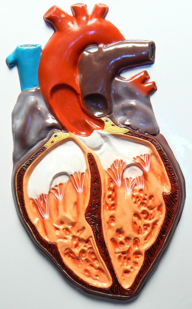 Модель изготовлена из пластмассы путём вакуумного формования. На барельефной модели можно рассмотреть следующие детали строения сердца: