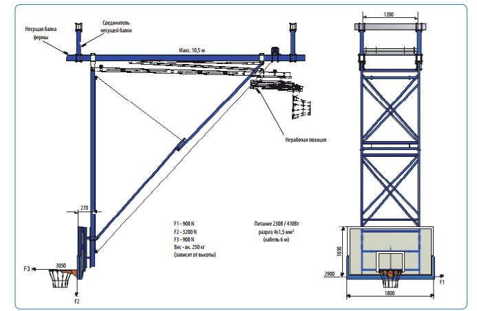 Габариты в сложенном виде (ДхШхВ): 3700х1800х3000 мм.