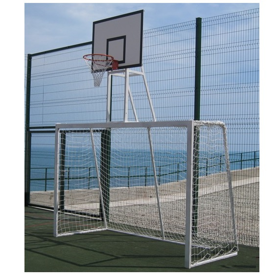 Комбинированные ворота для минифутбола с баскетбольным щитом и кольцом.