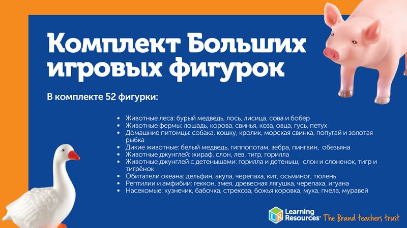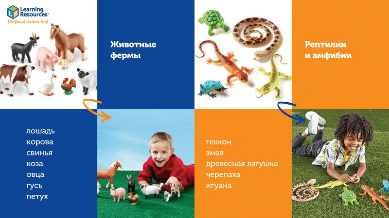 Играя с ними, малыши смогут понять, какие животные являются дикими, а какие — домашними. Так, например, с животными фермы малыши узнают, какие звуки издает корова или лошадь, сразу же попробуют воспроизвести их, что благотворно скажется на развитии речи.