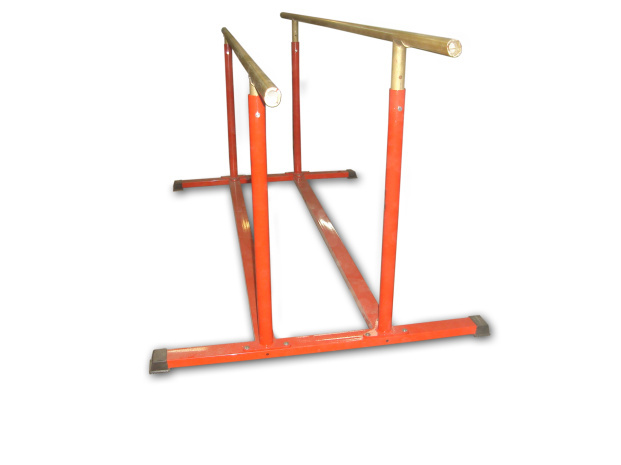 Представляют собой сборную конструкцию, состоящую из рамы, четырёх стоек с механизмами зажима и фиксации и двух стеклопластиковых жердей. Брусья предназначены для гимнастической подготовки и должны использоваться в закрытых спортивных сооружениях. Сечение жердей имеет специальную геометрию для надежного захвата их кистями рук при выполнении упражнений. Габаритные размеры: Длина — 3500 мм; ширина — 1500 мм; высота — 1200 мм. Регулирование высоты жердей: 1100 мм --1800 мм (с шагом 50 мм), по ширине не регулируются. Масса — до 90 кг. Допустимая нагрузка — до 150 кг. В раме брусьев выполнены отверстия для возможности применения транспортировочных тележек (поставляются отдельно по запросу).