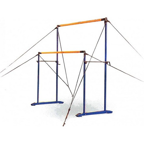 Брусья состоят из двух оснований, на которых закреплены высокие и низкие стойки. Высота стоек регулируется. Между каждой высокой и низкой стойкой имеется механизм разведения, который позволяет выдерживать правильное положение перекладин и служит дополнительной опорой.