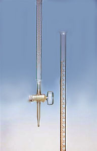 Стеклянные градуированные бюретки применяются для титрования и точного дозирования небольших объемов жидкости.