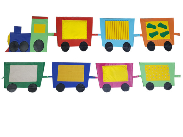Сенсорная тропа состоит из основания и 8 элементов в виде вагончиков, отличающихся цветом, наполнением/фактурой. К основанию крепятся с помощью контактной ленты. Предназначена для массажа стоп, развития тактильных ощущений, изучения цвета.