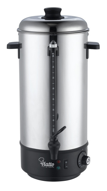 Кипятильник VIATTO VA-WB16 настольный заливной электрический. Комбинированный корпус — из нержавеющей стали и пластика. Закрытый нагревательный элемент. Одинарные стенки. Мерное стекло позволяет отслеживать уровень воды. Терморегулятор дает возможность установить температуру в пределах +30...+100С.