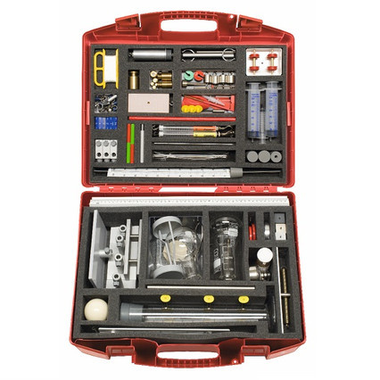 Механика/теплота - блоки/рычаг, чашки весов, образцы различной массы, спиральные пружины, динамометры, блоки трения, сферы, тележки, сосуды с дренажными отверстиями, поплавок, манометр, шары из пластика, стеклянный шприц, стеклянные приборы, резиновые пробки, горелка, металлическая сетка, термометр.