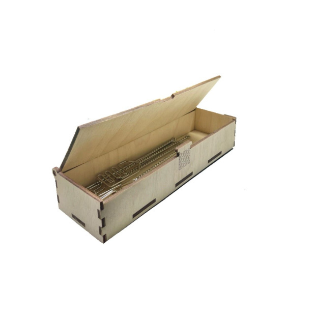Футляр изготовлен из березовой фанеры. В него помещается любой комплект логопедических зондов. Размер футляра 40х65х220 мм