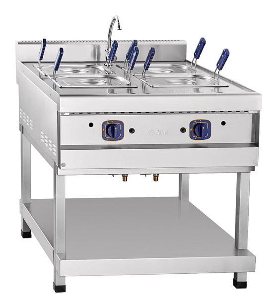 Газоварка Abat ГВК-90/2П предназначена для варки всех видов макаронных изделий, пельменей, вареников, овощей, корнеплодов и яиц на предприятиях общественного питания и торговли. Модель оснащена газконтролем, пьезорозжигом, краном для слива воды и регулируемыми по высоте ножками.