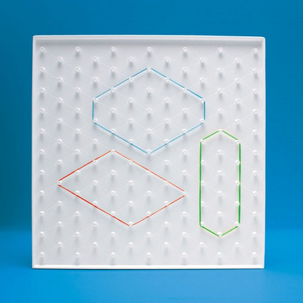 Игровое поле геоборда – пластиковый планшет с выступающими колышками, расположенными с одинаковыми промежутками по горизонтали и вертикали, за которые можно цеплять входящие в набор резинки и «рисовать» геометрические фигуры. Сетка колышков с промежутками в 2 см с обоих сторон игрового поля.