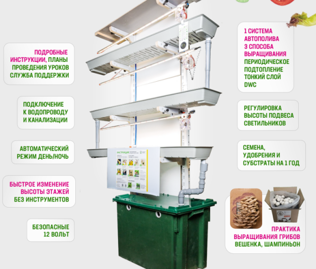 С возможностью выращивания 3 способами: Периодическое подтопление; Тонкий слой; DWC - система глубоководных культур с компрессором и аэрационным камнем.