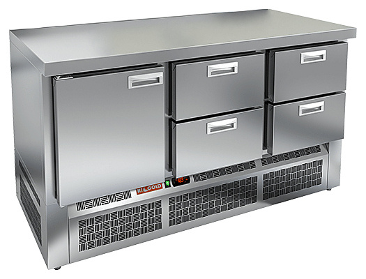 GNE 122/TN О стол охл. (-2+10), островн., 1 дверь, 4 ящика, 1485х700х850мм, ниж.распол.агрегата