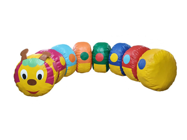 Игровой набор пуфиков «Гусеница» предназначен для сидения и игр, развивающих крупную моторику, способствующих сенсорному и познавательному развитию ребёнка: изучения цвета, счета и свойств поверхностей предметов.