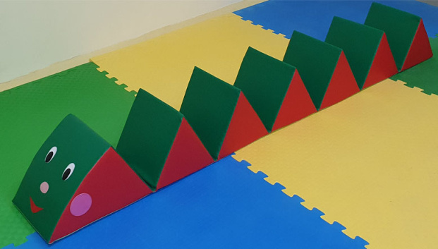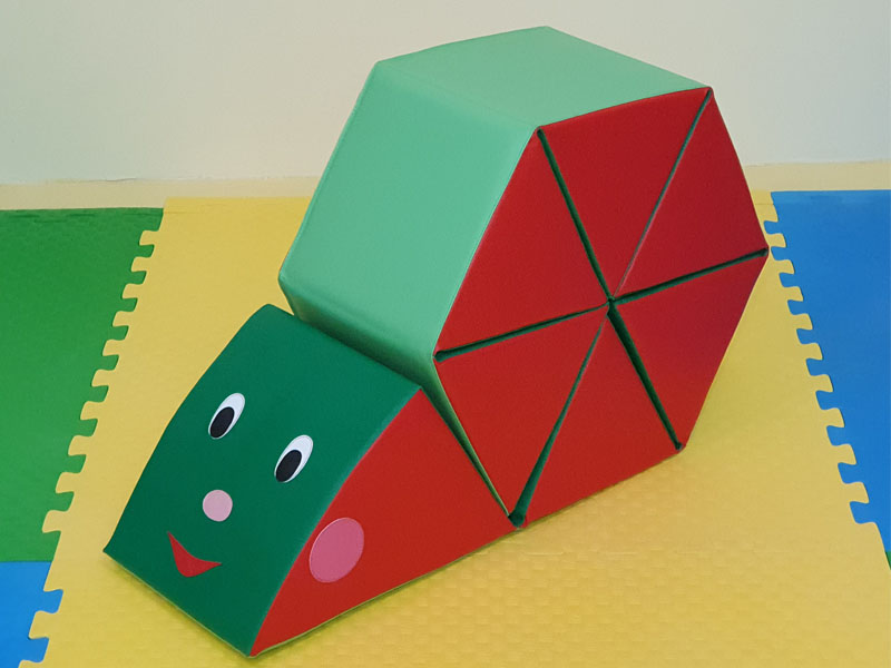 Игровой набор в виде ленты из мягких треугольников, которые при скатывании превращаются в домик улитки.