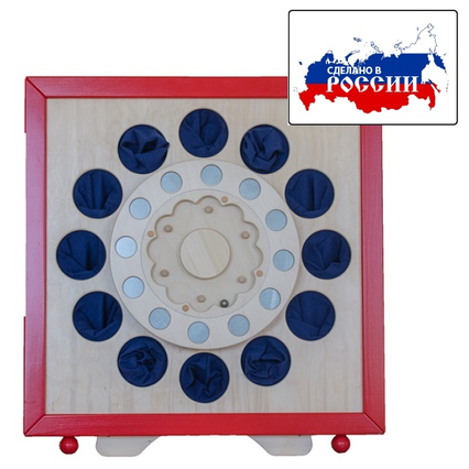 Игровая панель выполнена в виде настольного мольберта, на котором по кругу расположены 12 отверстий, в которые проходит рука. С обратной стороны к этим отверстиям прикреплены полотняные мешочки - "норки". Магнитные фишки ставятся на магниты рулетки, находящиеся в центре мольберта, а немагнитные раскладываются в «норки». Игрок должен на ощупь найти пару к каждой магнитной фишке. Фишка, к которой нужно на ощупь найти пару, определяется с помощью рулетки с металлическим шариком внутри, которую раскручивает игрок. Возможно много вариантов игры, в одних фишки раскладываются в каждую из 12 норок, при других лишь в некоторые норки.