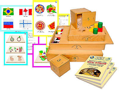 Комплект методических пособий по работе с игровым набором «Дары Фрёбеля» состоит из 6 частей, включает описание каждого модуля и 5 методических рекомендаций по образовательным областям (в соответствии с федеральным государственным образовательным стандартом дошкольного образования) с комплектами карточек-игр (80 карточек).
