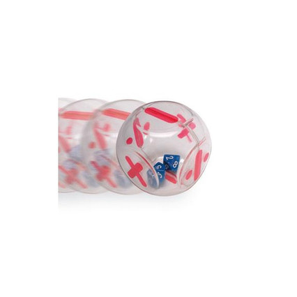 В прозрачном пластиковом кубике, на грани которого нанесены символы, находятся две малые десятигранные кости с цифрами от 0 до 9. Знаки действия оформлены в виде многоразовых наклеек, которые учитель может менять в соответствии с изучаемым материалом и возможностями своих учеников.