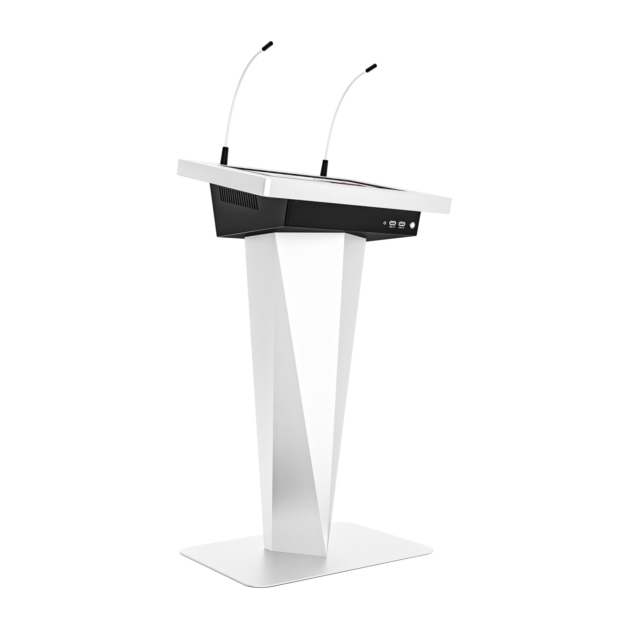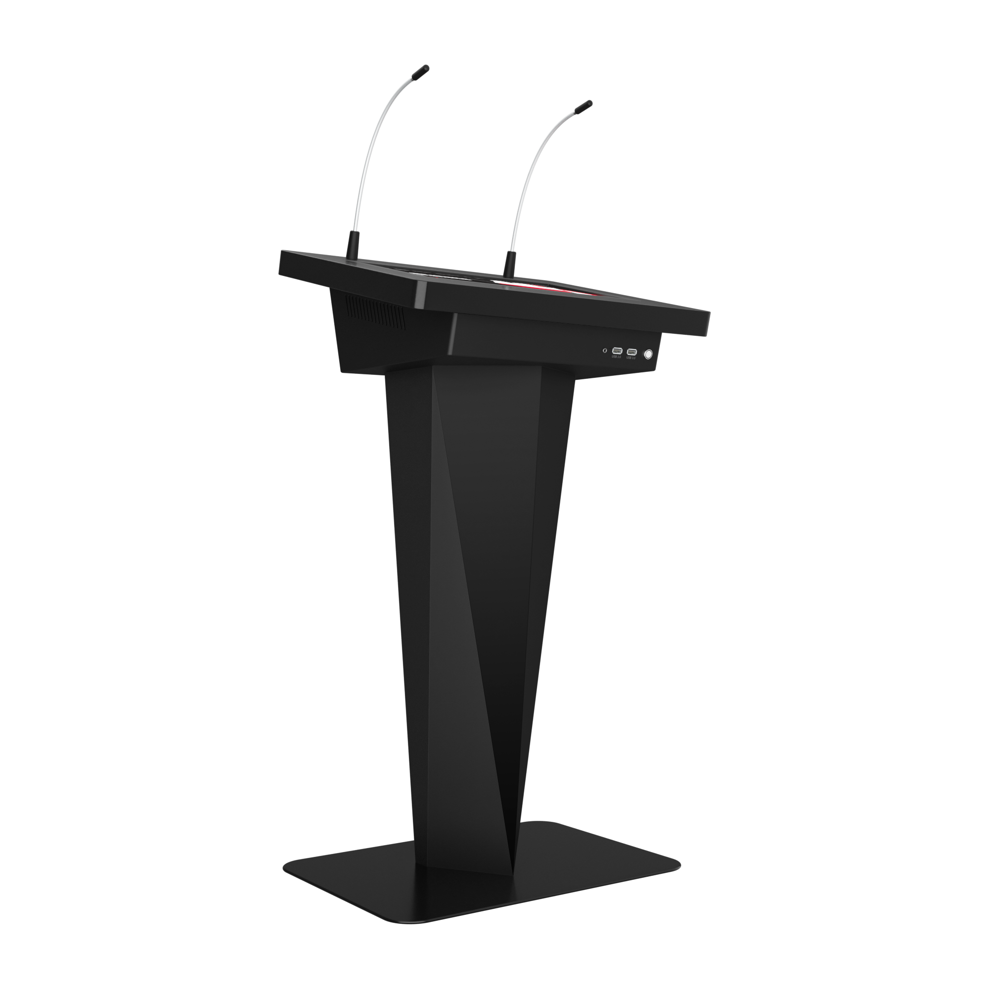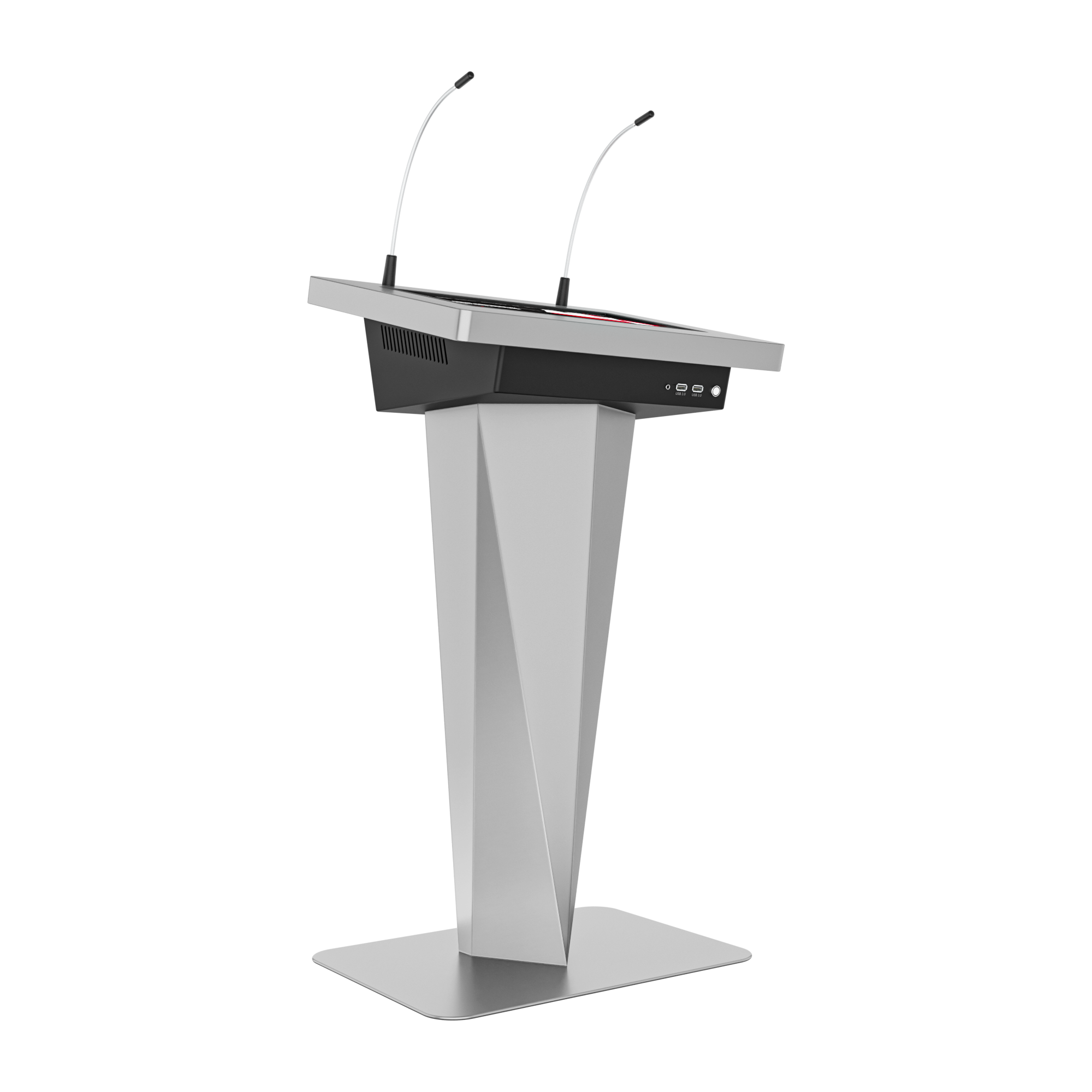 Выступить на большую аудиторию легко и просто, если вы используете интерактивную трибуну Terra. Изящный дизайн корпуса, сенсорный дисплей, микрофоны, а также набор всех необходимых разъемов для подключения техники помогут качественно донести информацию до слушателей и запомнить ваше выступление. Возможность брендирования корпуса станет неотъемлемой частью для гармоничного вписывания в пространство. В одной моделе сочетается все, что нужно для интересных и запоминающихся лекций и конференций!