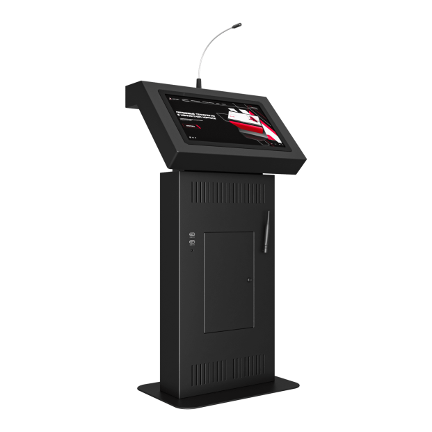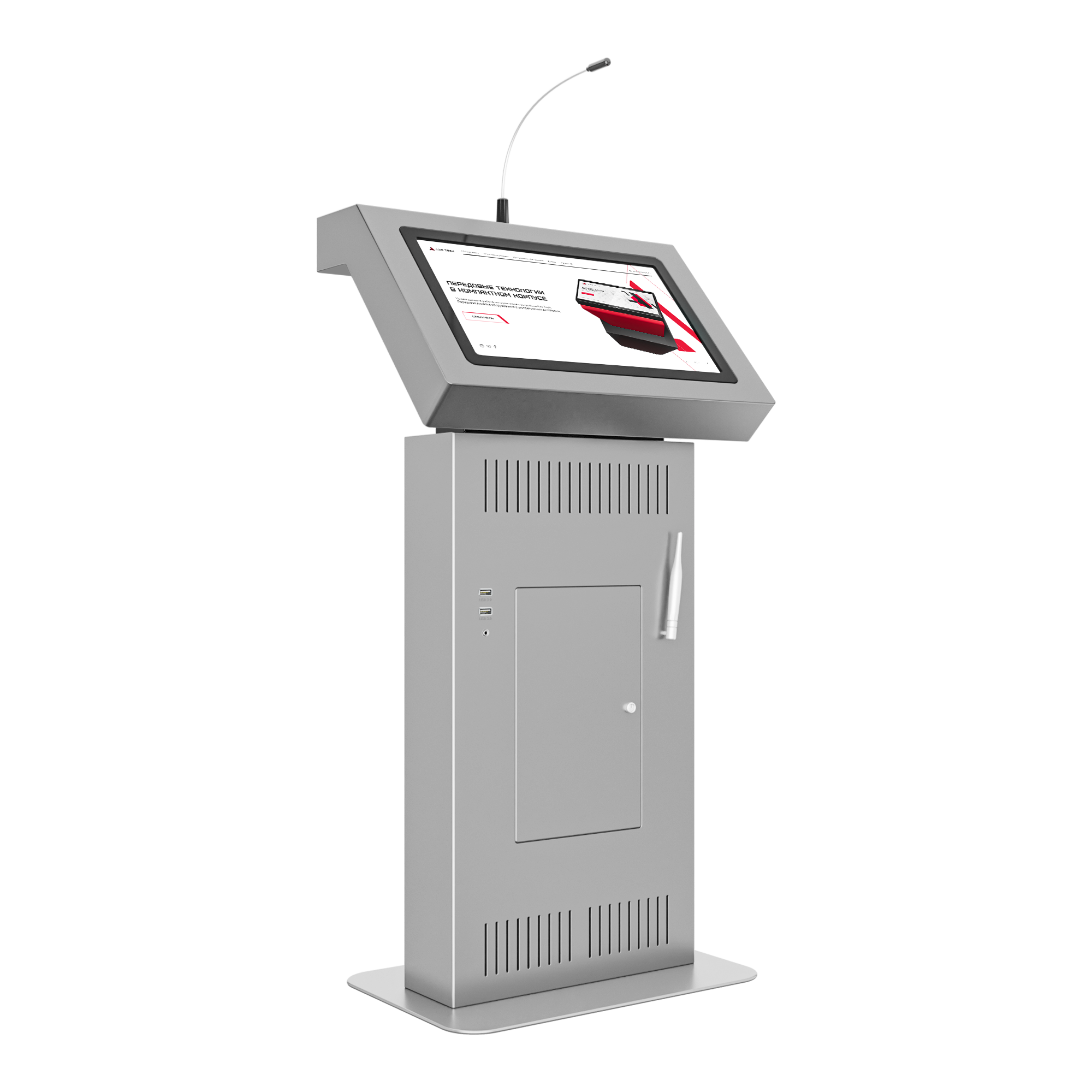 Сенсорное оборудование для проведения лекций, форумов, бизнес-конференций. Интерактивная трибуна Voice позволяет работать с любыми приложениями, текстовыми, аудио- и видеофайлами. Создавать пометки на мониторе устройства для демонстрации на большом экране. Профессиональный микрофон, яркий экран, вешние разъемы неотъемлемые составляющие данной модели.