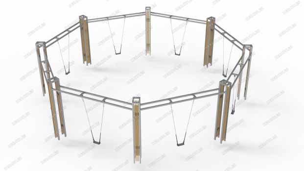Сидения - обрезиненный металл, цепи - оцинкованные №6, часть закрыта пластиком (в месте хвата рукой), узлы вращения - на шариковых подшипниках. Количество сидений 8 шт.
