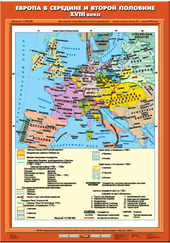 Карта Европа в середине и второй половине XVIII века 70х100