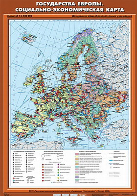 Карта Государства Зарубежной Европы. Социально-экономическая карта 70х100