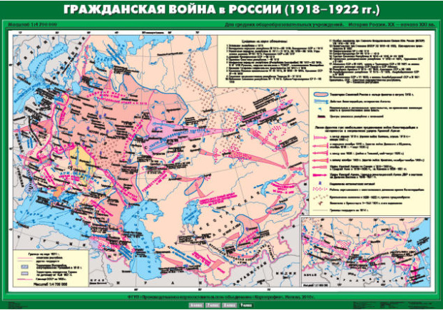 Карта Гражданская война в России (1918 - 1922 гг.) 100х140