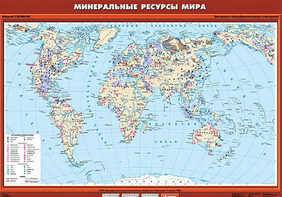 Карта Минеральные ресурсы мира 100х140