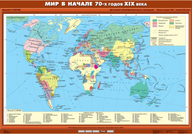 Карта Мир в начале 70-х годов XIX в. 100х140