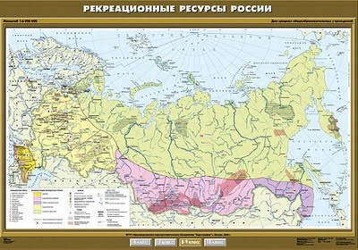 Карта Рекреационные ресурсы России 100х140