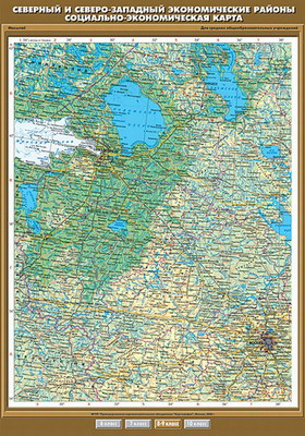 Карта Северный и Северо-Западный экономические районы. Социально-экономическая карта 100х140