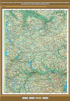 Карта Центральный, Центрально-черноземный и Волго-Вятский экономические районы. Социально-экономическая карта 100х140