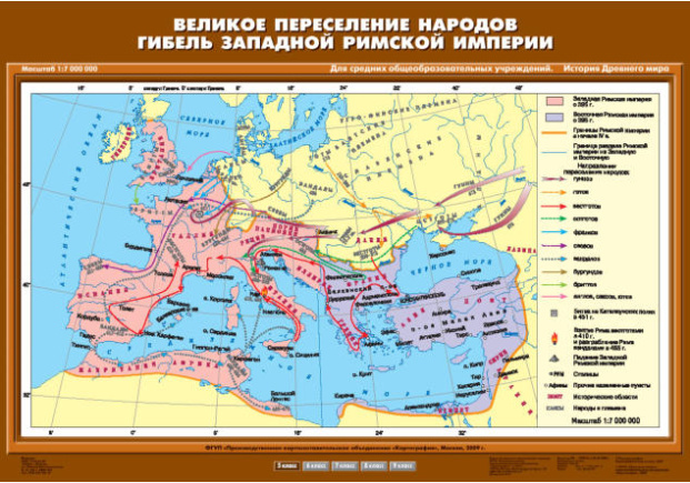 Карта Великое переселение народов. Гибель Западной Римской империи 70х100