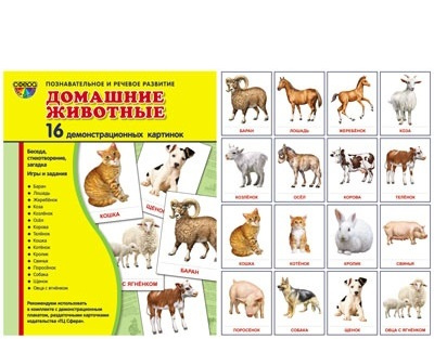 Карточки демонстрационные Домашние животные (16 шт)