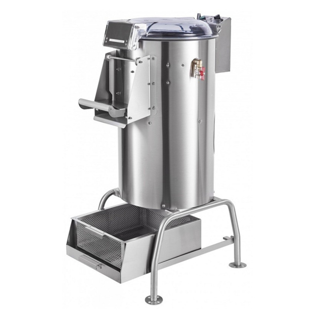 Машина картофелеочистительная кухонная Abat МКК-300-01 предназначена для очистки картофеля и корнеплодов от кожуры на предприятиях общественного питания. Корпус выполнен полностью из высококачественной полированной нержавеющей стали – как снаружи, так и внутри. В нижней части корпуса находится мощный двигатель закрытого типа, рассчитанный на долгосрочную работу и полностью защищенный от попадания влаги. Степень защиты двигателя от попадания влаги соответствует стандарту IP 54. Благодаря крышке из прозрачного поликарбоната процесс очистки всегда находится под контролем и степень очистки корнеплодов можно легко определить визуально. Абразивным материалом покрыт не только вращающийся диск, но и стенки рабочей камеры. Для лучшего перемешивания и промывания корнеплоды непрерывно поливаются водой через разбрызгиватель.