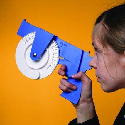 Клинометр позволяет измерять угол наклона линии или плоскости. Прибор представляет собой диск, на оси которого закреплена шкала вертикальных углов. Рукоятка - в форме пистолета с прицелом.