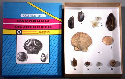 Коллекция предназначена для использования в качестве демонстрационного раздаточного материала. В коллекции представлены раковины брюхоногих и двустворчатых моллюсков нескольких видов, различные по форме, размеру и характеру оформления поверхности (ребристости). Образцы уложены в ложементы складной картонной коробки.