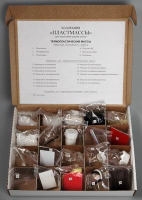 Коллекция является раздаточным материалом для проведения занятий по теме “Пластмассы” в курсе органической химии в средней школе