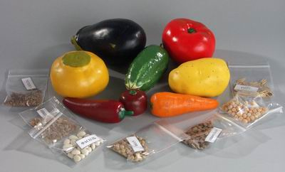 В коллекции представлены муляжи плодов и корнеплодов основных сельскохозяйственных культур и семена зерновых, зернобобовых, эфирно-масличных, технических и овощных культур. Муляжи изготовлены из пенополистирола, окрашены масляными красками и покрыты защитным слоем парафина в соответствии с образцом- эталоном. Муляжи имитируют натуральные овощи (корнеплоды и плоды). Семена расфасованы в полиэтиленовые пакеты и снабжены этикетками с наименованием. Образцы уложены в картонную складную коробку с гнёздами. Коробка упакована в термоусадочную прозрачную плёнку.